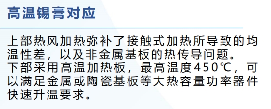 独特的步进搬送,无需轨道及调宽机构,解决传统回流焊轨道变形卡板等问题。采用上部热风下部接触式加热,弥补了全热风热传导率低,及全接触式均热性差的缺点。
